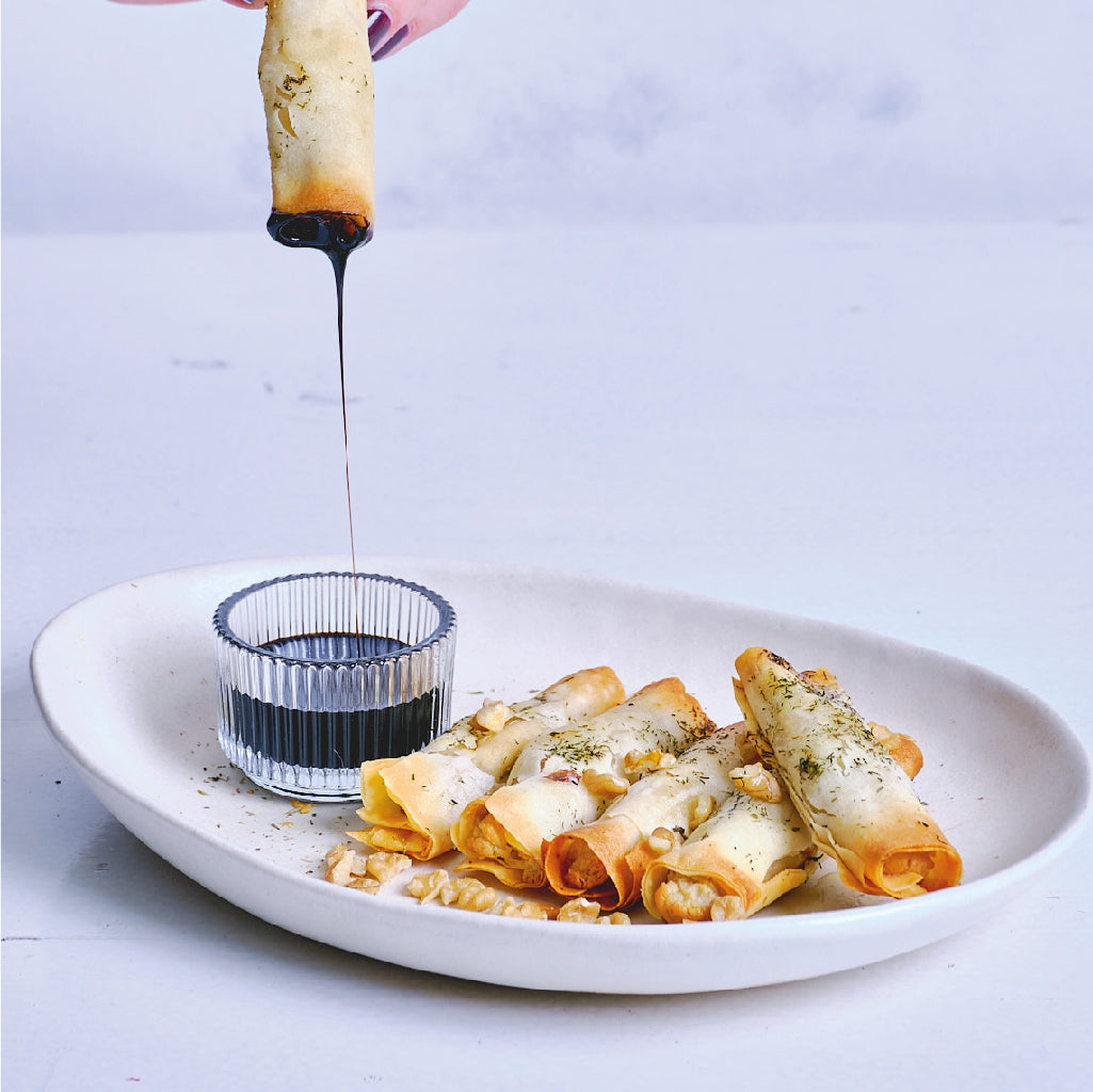 -Rollito de masa filo con peras, queso azul y nueces